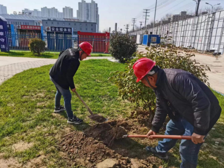 第一分公司紫郡府項(xiàng)目部為學(xué)習(xí)貫徹公司《環(huán)境保護(hù)和節(jié)能減排管理辦法》,樹牢安全施工、綠色施工理念。在植樹節(jié)來臨之際,為美化、凈化工作環(huán)境,增強(qiáng)團(tuán)結(jié)互助意識,項(xiàng)目黨員及班子成員帶頭開展植樹活動。