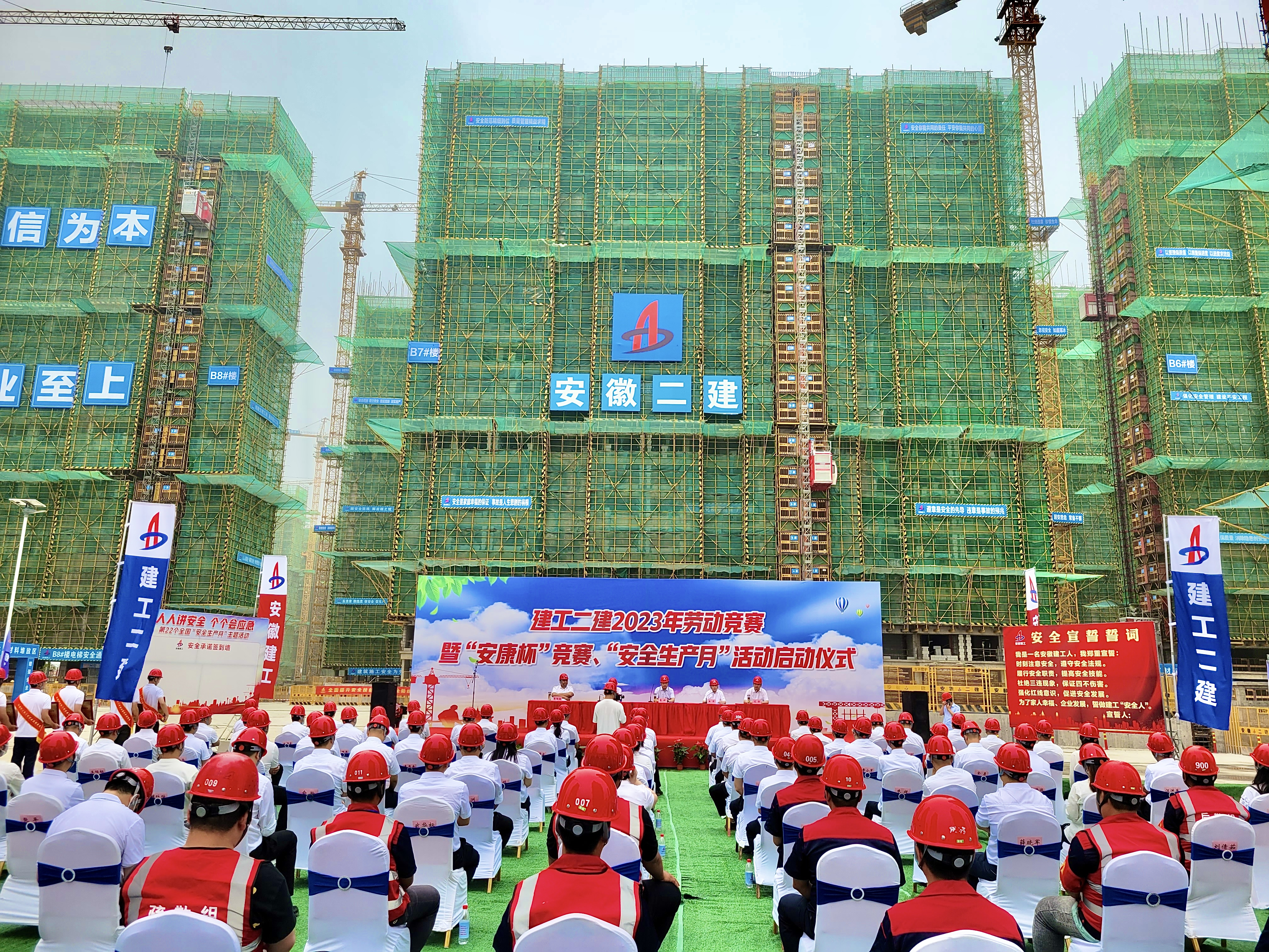5月30日,建工二建在第五公司蕪湖濱江時代項目舉行2023年度“安全生產(chǎn)月”活動啟動儀式。公司領導班子成員,勞動競賽委員會成員,所屬各單位主要領導,分管安全、生產(chǎn)及質(zhì)量副經(jīng)理,工會(副)主席,工管科、安全科科長,公司工會、工程管理部、安全管理部、技術質(zhì)量部相關人員,受表彰先進集體和個人代表等共百余人參加儀式。隨著啟動儀式的開展,2023年“安全生產(chǎn)月”系列活動的帷幕正式拉開。