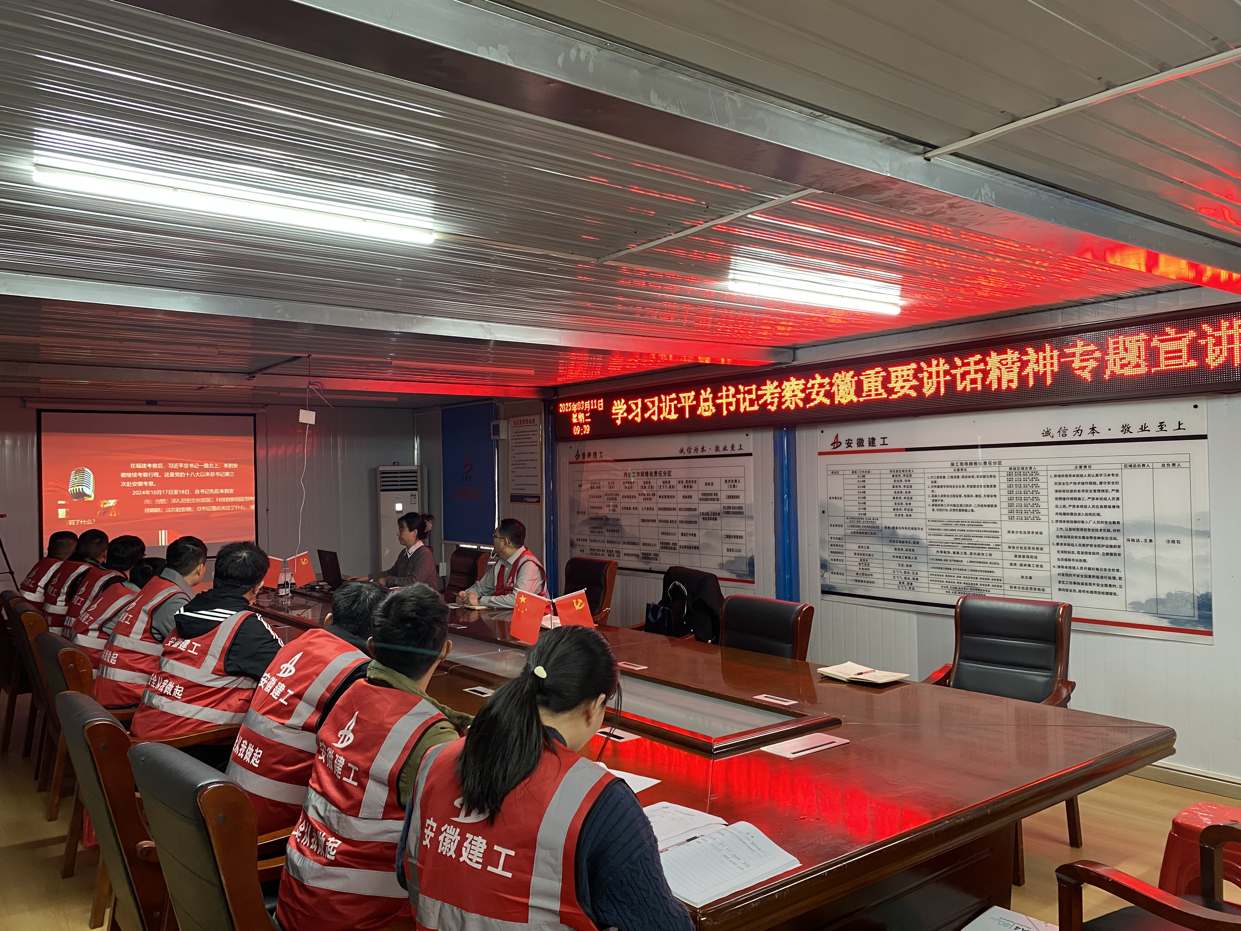 徐晶晶圍繞習(xí)近平總書(shū)記考察安徽重要講話(huà)精神,詳細(xì)解讀了觀(guān)古巷、看新城、謀未來(lái)等內(nèi)容。會(huì)議強(qiáng)調(diào)要堅(jiān)持黨建引領(lǐng),充分發(fā)揮基層黨支部的戰(zhàn)斗堡壘作用和黨員的先鋒模范作用。隨后項(xiàng)目經(jīng)理汪桂石傳達(dá)學(xué)習(xí)了安徽建工集團(tuán)三屆二次職代會(huì)暨2025年工作會(huì)議精神及公司二屆一次職代會(huì)精神。