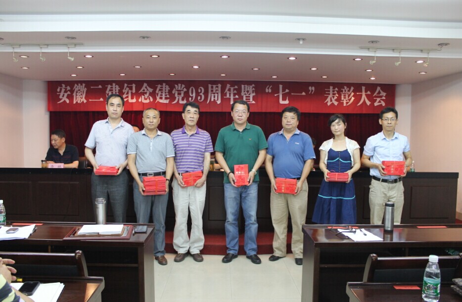 7月1日下午,安徽二建黨委在三樓會議室召開了紀(jì)念建黨93周年暨“七一”表彰會。公司兩級領(lǐng)導(dǎo)班子成員、受表彰的先進(jìn)基層黨組織代表、優(yōu)秀共產(chǎn)黨員、優(yōu)秀共產(chǎn)黨員示范崗、部分在崗黨員和“我與安徽建工夢”征文獲獎代表共70多人參加會議。