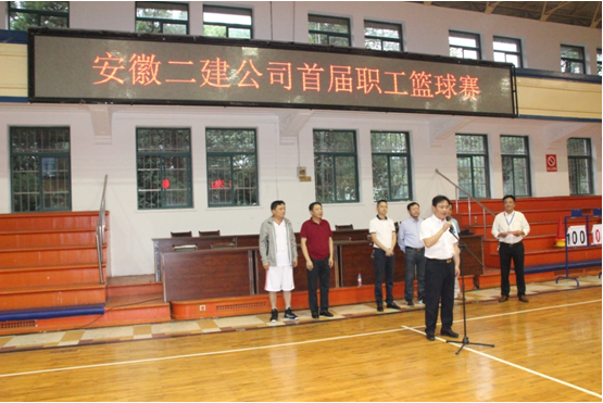總經(jīng)理許業(yè)勇宣布安徽二建首屆職工籃球賽開幕