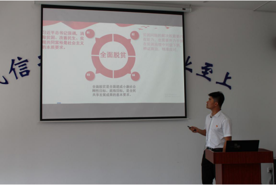 微宣講競賽結(jié)束后,緊接著開展了“黨課開講啦”活動,所屬各支部書記、優(yōu)秀黨員代表結(jié)合自己的工作實際,講述對決勝全面建成小康社會、決戰(zhàn)脫貧攻堅、打贏疫情防控阻擊戰(zhàn)等一線先進(jìn)事跡的所見所聞所悟,引起了大家的深思與共鳴,為全面打好精準(zhǔn)脫貧攻堅戰(zhàn)提供堅強(qiáng)組織保證。