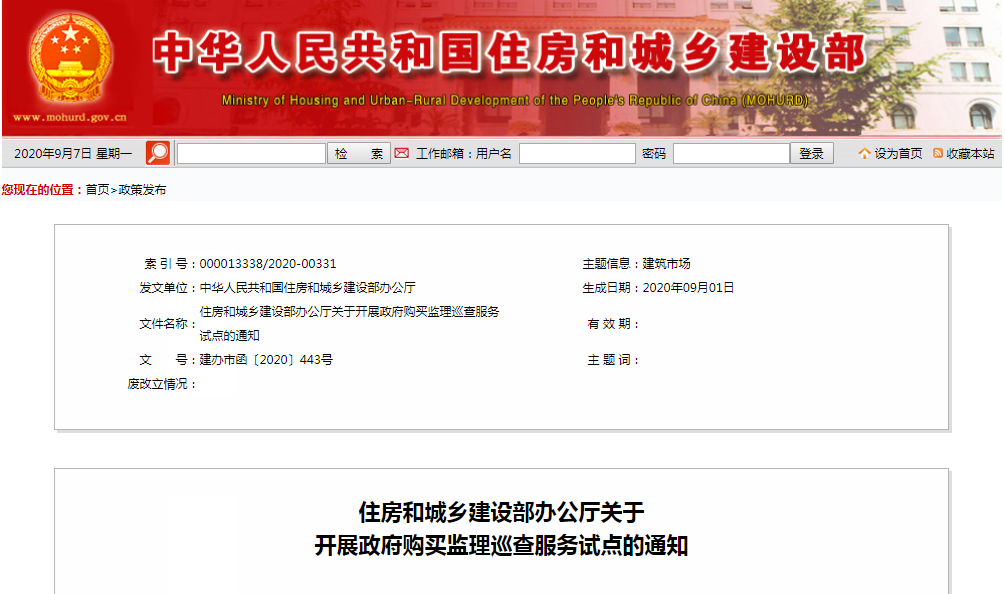 住房和城鄉(xiāng)建設部開展政府購買監(jiān)理巡查服務試點