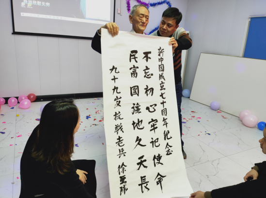 31日下午,項(xiàng)目職工包起一盤盤熱氣騰騰的餃子,歡迎前來參加晚會的嘉賓。晚7點(diǎn)半,聯(lián)歡會正式拉開帷幕。首先,支部書記董建民致辭,對全體干部職工一年來為項(xiàng)目的發(fā)展所做出的貢獻(xiàn)和努力表示肯定和感謝,并向廣大職工及其家屬送上了新年的美好祝福。晚會過程中,由項(xiàng)目部女員工編排的舞蹈《浪漫櫻花》令人贊嘆,機(jī)關(guān)員工李丹然的魔術(shù)表演《新貴妃醉酒》讓人驚喜連連,由安徽省新四軍歷史研究會淮海委員會征修、周芳琴聯(lián)袂出演的小品《賣菜》令人捧腹大笑,《成都》、《一生所愛》、《隱形的翅膀》等歌曲串燒給大家獻(xiàn)上了一場視聽盛宴,朗誦《回家過年》營造出濃濃的節(jié)日氛圍。聯(lián)歡現(xiàn)場,背夾氣球、比劃猜謎等游戲更是掀起一波又一波的高潮。接近尾聲時,張振山會長帶來了安徽省新四軍歷史研究會淮海委員會原會長徐亞球的一副珍貴的書法,并祝愿安徽二建公司蓬勃發(fā)展、再創(chuàng)輝煌!