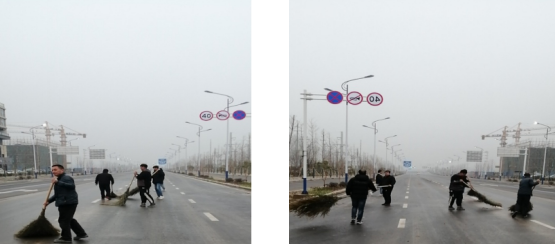 3月19日,二分公司琨宇悅湖城項目部與城管部門聯(lián)系主動承擔(dān)清掃陳集路和廬陽大道路面衛(wèi)生,項目管理人員在項目經(jīng)理姚鵬的帶領(lǐng)下,拿起掃把垃圾桶,清理下雨后路面留下的落葉及垃圾,大家干勁十足,落葉及垃圾很快得到清理,得到了城管部門的認(rèn)可。