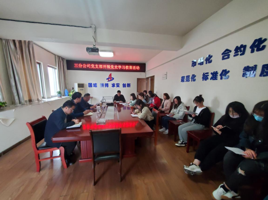 三分公司黨支部開展黨史學(xué)習(xí)教育活動(dòng),分公司機(jī)關(guān)全體人員參加,活動(dòng)由支部書記陳習(xí)武主持。首先,陳習(xí)武帶領(lǐng)大家學(xué)習(xí)了二建黨發(fā)【2021】13號(hào)文《安徽二建公司黨委關(guān)于開展黨史學(xué)習(xí)教育的工作方案》,并就分公司黨支部的黨史學(xué)習(xí)教育活動(dòng)做了詳細(xì)安排部署,要求全體黨員干部把思想和行動(dòng)統(tǒng)一到集團(tuán)、公司黨委的決策部署上來,高標(biāo)準(zhǔn)、高質(zhì)量完成黨史學(xué)習(xí)教育各項(xiàng)任務(wù),努力做到學(xué)史明理、學(xué)史增信、學(xué)史崇德、學(xué)史力行,以優(yōu)異成績(jī)迎接建黨100周年。隨后,陳習(xí)武帶領(lǐng)大家上了一堂生動(dòng)的黨史課?!皬纳虾J瘞?kù)門到嘉興南湖,一艘小小紅船承載著人民的重托、民族的希望,越過急流險(xiǎn)灘,穿過驚濤駭浪,成為領(lǐng)航中國(guó)行穩(wěn)致遠(yuǎn)的巍巍巨輪?!?。通過視頻和講解相結(jié)合,為大家敘述了從中國(guó)共產(chǎn)黨成立到建立新中國(guó),28年間,黨召開了一次次重要會(huì)議。這些會(huì)議作出的決策,指引了中國(guó)革命的方向,推動(dòng)了歷史進(jìn)程,具有里程碑意義。大家紛紛表示,將從黨史中汲取智慧和力量,堅(jiān)定信仰信念,進(jìn)一步提高黨性修養(yǎng),不忘初心,以實(shí)際行動(dòng)發(fā)揮好黨員干部的模范帶頭作用,積極投入到干事創(chuàng)業(yè)中去,為分公司的發(fā)展添磚加瓦。