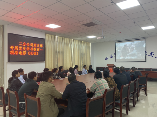 為認(rèn)真貫徹落實(shí)習(xí)近平總書(shū)記在中央黨史學(xué)習(xí)教育動(dòng)員大會(huì)上的重要講話(huà)精神,進(jìn)一步深入貫徹公司黨委關(guān)于開(kāi)展黨史學(xué)習(xí)教育的文件精神。4月16日,二分公司黨支部開(kāi)展黨史學(xué)習(xí)教育活動(dòng),組織黨員和干部職工觀(guān)看電影《長(zhǎng)征》及紀(jì)錄片《信仰的力量》節(jié)選《祖國(guó)至上》。