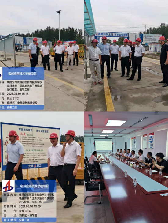8月10日,建工控股黨委委員、紀(jì)委書(shū)記王汪苗一行赴宿州三館一院一中心及應(yīng)用技術(shù)學(xué)校項(xiàng)目開(kāi)展送清涼活動(dòng),發(fā)放防暑降溫物品,看望、慰問(wèn)奮戰(zhàn)在勞動(dòng)競(jìng)賽一線的項(xiàng)目職工。
