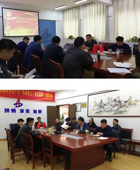 根據(jù)《轉(zhuǎn)發(fā)關(guān)于<安徽建工控股黨委關(guān)于召開2018年度基層黨組織組織生活會和開展民主評議黨員的通知>的通知》二建黨發(fā)〔2019〕8號文件精神,四分公司黨支部高度重視,嚴(yán)密組織,認(rèn)真籌備,于2019年3月19日在分公司會議室召開了支部組織生活會。會議由支部書記董建民主持,公司黨委副書記、紀(jì)委書記仇多維到會指導(dǎo),全體黨員參會。