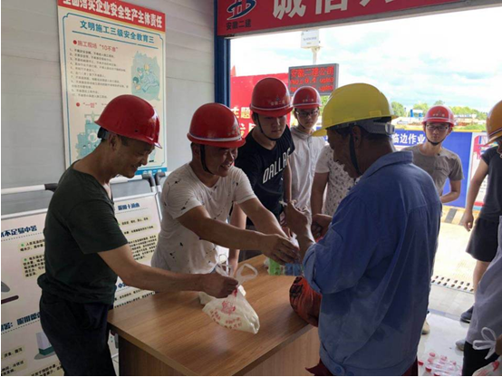 為了響應(yīng)公司開展的防暑降溫送清涼活動,關(guān)愛在高溫一線作業(yè)的員工,項目部領(lǐng)導分三組帶隊將冰涼的礦泉水送到員工手中。一句普通的叮囑拉近了大家的關(guān)系,也得到了一線員工的稱贊,既鼓舞了全體員工的干勁,同時也加強了對現(xiàn)場安全、防暑降溫的宣貫。