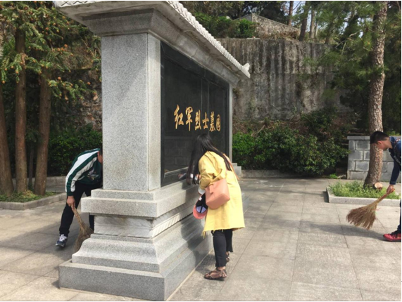 參觀結(jié)束后,青年團員們抑制住激動的心情,組織起墓園清潔活動。此時正值雨季,樹葉經(jīng)風(fēng)雨吹打,稀稀落落覆滿了陵園,大家合理分工,有序的對紅軍烈士墓園進行了清掃。大伙們清掃的動作干練而又小心,生怕打擾了紅軍烈士的安眠,擦拭的地方干凈而又到位,生怕浮塵暗淡了革命烈士的光榮。