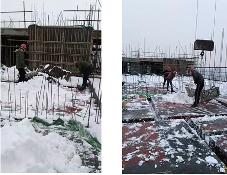 隨著“大干60天生產(chǎn)競(jìng)賽”的圓滿(mǎn)結(jié)束,宿州市于元月4日迎來(lái)了第一場(chǎng)大范圍強(qiáng)降雪。持續(xù)了兩天的大雪使整個(gè)宿州籠罩在一片白色之中,道路全部被阻斷,現(xiàn)場(chǎng)施工也一度停滯。為做好極端天氣下建筑施工的安全生產(chǎn)工作,一方面項(xiàng)目部緊急成立應(yīng)急小組,對(duì)暴雪造成的安全隱患進(jìn)行全面排查,尤其對(duì)生活區(qū)、樓層外架、現(xiàn)場(chǎng)臨時(shí)用電、起重設(shè)備等進(jìn)行專(zhuān)項(xiàng)檢查,及時(shí)清理積雪、消除隱患;另一方面為保證雪后施工的正常開(kāi)展,項(xiàng)目部動(dòng)員管理人員對(duì)樓頂現(xiàn)澆面的積雪進(jìn)行清理,為下一步的安全生產(chǎn)提供及時(shí)的工作面。