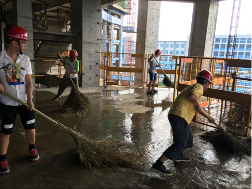 團(tuán)員青年利用傍晚高溫天氣減弱時(shí)段,使用大掃帚、灑水管、拖把、防塵布等物品,在工地安全入口、樓層內(nèi)、施工環(huán)形路上進(jìn)行除塵行動(dòng),每一名青年團(tuán)員滿(mǎn)懷熱情,積極響應(yīng),你灑水我拖地,你接水管我蓋布,干勁十足,展現(xiàn)了生物島一期項(xiàng)目青年團(tuán)員的良好形象。