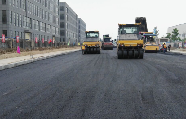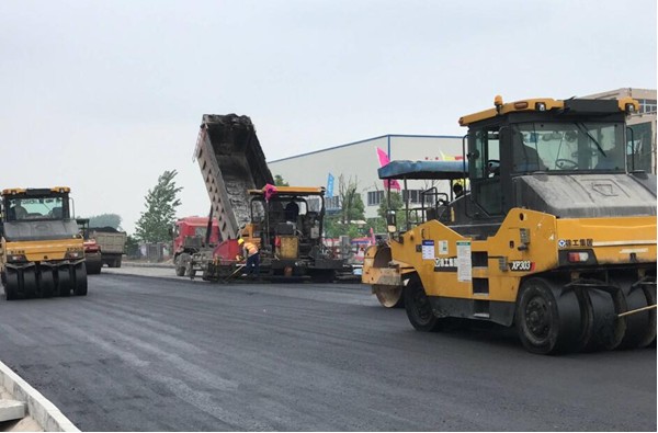 2017年5月3日上午9:58,安徽二建太和市政道路項(xiàng)目現(xiàn)場(chǎng)彩旗飄揚(yáng)、機(jī)器轟鳴,攤鋪機(jī)、壓路機(jī)、運(yùn)料車等各種機(jī)械設(shè)備有條不紊地進(jìn)行著瀝青路面試驗(yàn)段施工。