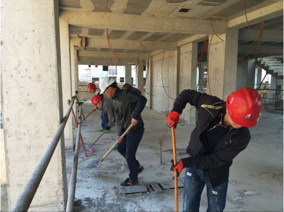 康斯坦丁6000套項目部組織人員參與放線清理樓道