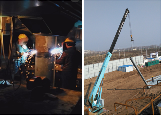 為搶工期,積極為年后創(chuàng)造工作面,五河農(nóng)產(chǎn)品批發(fā)市場(chǎng)項(xiàng)目部春節(jié)前加班加點(diǎn),24小時(shí)輪班進(jìn)行樁基施工。