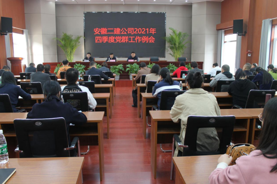 10月26日上午,安徽二建公司召開2021年四季度黨群工作例會,公司黨委副書記、工會主席王軍,黨委委員、紀(jì)委書記沈壯出席會議,機(jī)關(guān)黨群部門全體人員、基層各單位黨支部書記、團(tuán)支部書記、綜合辦人員參會。會議由黨委工作部主任施用宏主持。