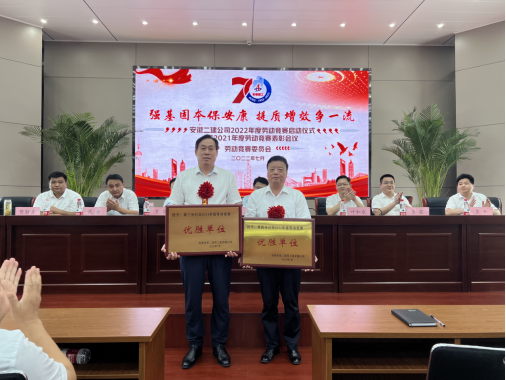 最后,隨著主持人的一聲號令,安徽二建公司“強基固本保安康 提質(zhì)增效爭一流”勞動競賽正式啟動!參加啟動儀式的公司領(lǐng)導(dǎo)向各參賽單位進(jìn)行授旗。