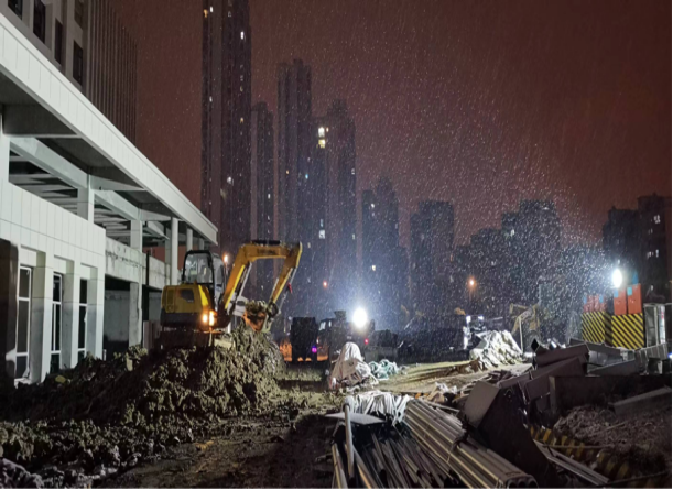 寒冷,擋不住工作的熱情。病毒,壓不垮堅(jiān)強(qiáng)的意志。在這疫情防控形勢(shì)依然嚴(yán)峻復(fù)雜的12月里,肥東縣人民醫(yī)院公共衛(wèi)生綜合樓項(xiàng)目的工地上一派熱火朝天的繁忙景象,在做好疫情防控工作的前提下,搶工期、保任務(wù),確保了疫情防控和建設(shè)施工“兩手抓、兩不誤”。土建、安裝、裝飾、道排等十幾個(gè)分包班組在總包統(tǒng)一指揮下,協(xié)同作戰(zhàn),夜以繼日的按進(jìn)度計(jì)劃全力推進(jìn)工程進(jìn)展。